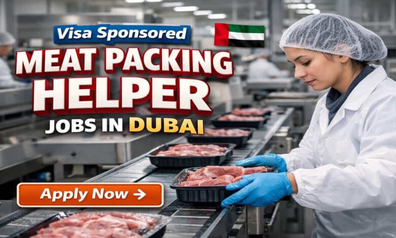 Visa Sponsored Meat Packing Helper Jobs in Dubai 2026 offer a monthly salary of AED 1,200 to AED 1,800, require little to no prior experience, involve physical on-site work in factories or warehouses, and fall under full-time labor job opportunities for international workers seeking stable employment abroad.