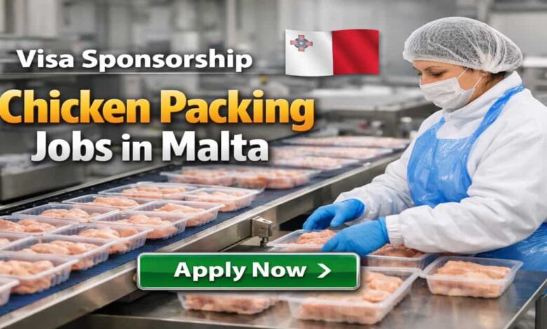 The Visa Sponsorship Chicken Packing Jobs in Malta offer a monthly salary of €1600 with full training and no prior experience required. Employees enjoy free accommodation, meals, transport, and medical benefits while working 8-hour shifts on-site. This opportunity welcomes eligible candidates from Asia, Africa, and other non-EU countries for a secure and rewarding career in 2026.